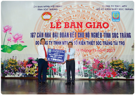 Không chỉ là một trong những doanh nghiệp hàng đầu của tỉnh Sóc Trăng luôn dẫn đầu thực hiện nghĩa vụ nộp ngân sách trên địa bàn tỉnh, Công ty TNHH MTV XSKT Sóc Trăng còn là đơn vị rất xông xáo trong các hoạt động xã hội từ thiện, an sinh cộng đồng với mức đóng góp hàng chục tỷ đồng mỗi năm. Có thể kể đến rất nhiều những hoạt động thiện nguyện giàu ý nghĩa mà tập thể người lao động Công ty đã tham gia như: Đóng góp cho Quỹ vì người nghèo, Quỹ mái ấm Công đoàn, Quỹ học bổng Lương Định Của; xây dựng nhà tình nghĩa, nhà đại đoàn kết; tài trợ xe cứu thương; tài trợ học bổng, ủng hộ nhân dân vùng bị thiên tai, lũ lụt,…