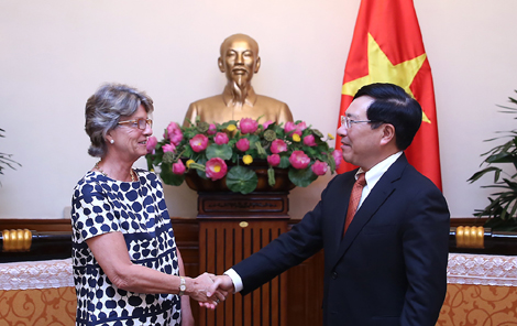 Phó Thủ tướng Phạm Bình Minh tiếp Đại sứ Tây Ban Nha Maria Jesus Figa Lopez-Palop. Ảnh: VGP/Hải Minh