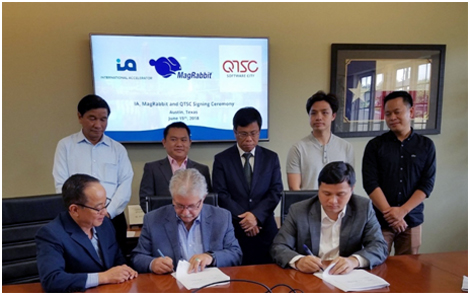 Trong khuôn khổ chuyến tham quan và làm việc tại Hoa Kỳ của Đoàn doanh nghiệp công nghệ thông tin (CNTT) Việt Nam, mới đây tại Tp.Austin (bang Texas, Hoa Kỳ), Công viên phần mềm Quang Trung (QTSC) đã ký kết Ghi nhớ hợp tác (MOU) với Quỹ đầu tư khởi nghiệp International Accelerator (IA) và Công ty MagRabbit (MR) về chương trình hỗ trợ tăng tốc khởi nghiệp quốc tế. Bản Ghi nhớ hợp tác được ký kết xuất phát từ mong muốn của các bên là hỗ trợ các công ty khởi nghiệp đến từ Việt Nam tìm hiểu thị trường Hoa Kỳ; tư vấn về các quỹ tài trợ của Hoa Kỳ, thông qua vai trò là một nền tảng đầu tư mạo hiểm chuyên cung ứng, đào tạo và ươm mầm doanh nghiệp, hỗ trợ bởi chương trình thúc đẩy khởi nghiệp tại Hoa Kỳ cho những công ty công nghệ mang tính sáng tạo cao do QTSC giới thiệu.