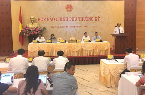 Chiều ngày 30/8, Bộ trưởng Chủ nhiệm Văn phòng Chính phủ (VPCP) Mai Tiến Dũng chủ trì họp báo Chính phủ thường kỳ tháng 8/2018.