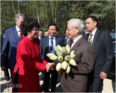 Bà Thái Hương – Nhà sáng lập, nhà tư vấn Tập đoàn TH vui mừng, xúc động chào đón Tổng Bí thư Nguyễn Phú Trọng đến dự Lễ Khởi công Nhà máy chế biến sữa tươi sạch tự động hóa TH công suất 1.500 tấn/ngày tại tỉnh Kaluga, Liên bang Nga nhân chuyến thăm chính thức Liên bang Nga.