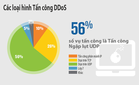 - 56% số vụ tấn công DDoS là ngập lụt UDP.