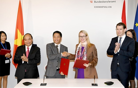 Chứng kiến lễ ký kết có Thủ tướng nước CHXHCN Việt Nam Nguyễn Xuân Phúc và Thủ tướng nước Cộng hoà Áo Sebastian Kurz.
