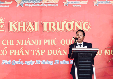 Giám đốc Lương Duy Ngân phát biểu tại buổi ra mắt chi nhánh Newstar Phú Quốc