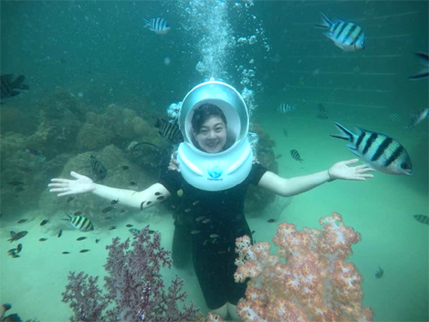 Đặc biệt, với tour đi bộ ngắm san hô và săn cá dưới đáy Đại Dương của chúng tôi, du khách sẽ được trải nghiệm cảm giác mới lạ và sự thích thú khi lặn ở độ sâu lên tới 15m dưới đáy biển, được chiêm ngưỡng vẻ đẹp tuyệt với của những rặng san hô, những sinh vật biển bơi lội quanh du khách... hay khi trải nhiệm cảm giác mạnh hơn khi tự mình săn bắn cá dưới đại dương, tự mình thưởng thức các chiến lợi phẩm thu được.