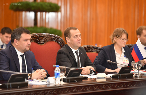 Trong bầu không khí hữu nghị, tin cậy và hiểu biết lẫn nhau, Thủ tướng Nguyễn Xuân Phúc và Thủ tướng Medvedev đã trao đổi các phương hướng và biện pháp thúc đẩy hơn nữa hợp tác giữa hai nước trên nhiều lĩnh vực nhằm đưa quan hệ Đối tác chiến lược toàn diện Việt - Nga ngày càng đi vào chiều sâu và bền vững.