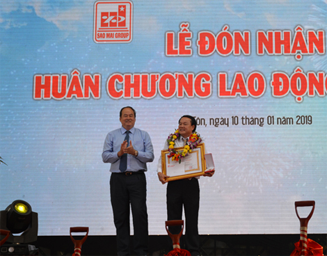 Với những thành tích đạt được trong lĩnh vực kinh doanh sản xuất, nhân sự kiện long trọng hôm nay Sao Mai Group đã vinh dự được Chủ tịch nước trao tặng Huân chương Lao động hạng III về sự đóng góp to lớn và rất ý nghĩa đối với quê hương đất nước và nhân dân.