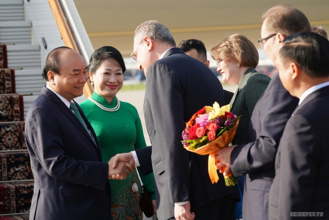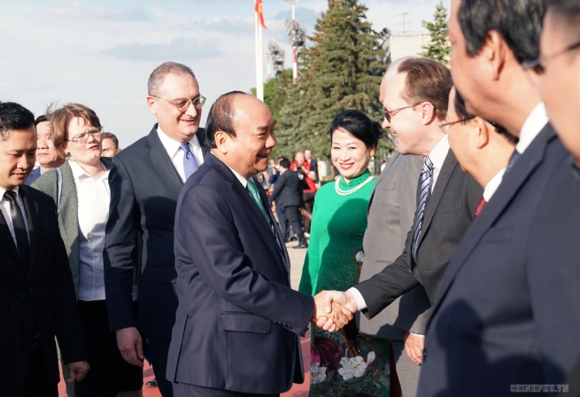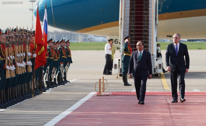 Khoảng 17h40 chiều 21/5, giờ địa phương (21h40 tối, giờ Việt Nam), Thủ tướng Nguyễn Xuân Phúc và Phu nhân cùng Đoàn cấp cao Việt Nam đã đến sân bay Vnukovo 2, bắt đầu các hoạt động tại thủ đô Moscow trong chuyến thăm chính thức Liên bang Nga.