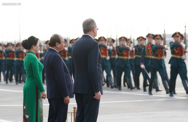 Lễ đón chính thức được tổ chức trọng thể tại sân bay Vnukovo, Moscow. Đại diện bộ Ngoại giao Nga mời Thủ tướng vào vị trí duyệt đội danh dự. Quân nhạc cử quốc thiều hai nước Việt Nam và Liên bang Nga. Tiếp đó, Thủ tướng duyệt đội danh dự.