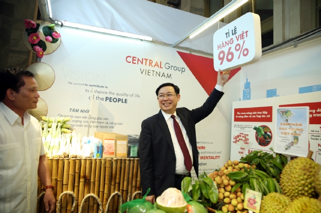 Phó Thủ tướng Vương Đình Huệ luôn quan tâm tới tỷ lệ hàng nội lên kệ hàng tại các chuỗi siêu thị của nhà đầu tư nước ngoài. Ảnh: VGP/Thành Chung