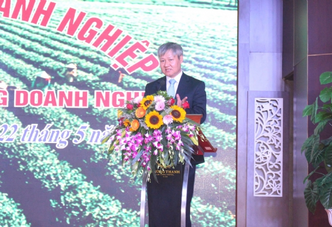 Phó Chủ tịch VCCI Võ Tân Thành phát biểu tại Diễn đàn đối thoại doanh nghiệp tỉnh Lai Châu năm 2019