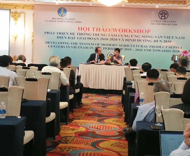 Ông Nguyễn Minh Tiến, Cục trưởng - Chánh văn phòng Điều phối nông thôn mới Trung ương cho biết, Bộ Nông nghiệp và Phát triển nông thôn đang xây dựng Đề án “Phát triển hệ thống trung tâm cung ứng nông sản hiện đại tại Việt Nam giai đoạn 2018 - 2020 và định hướng đến 2030” với sự hỗ trợ của Đại sứ quán Pháp và Cơ quan Phát triển Pháp - AFD tại Việt Nam. Mục tiêu của đề án là: Xây dựng định hướng và cơ chế, chính sách hỗ trợ phát triển hệ thống trung tâm cung ứng hàng nông sản Việt Nam hiện đại, đáp ứng được các tiêu chuẩn trong nước và quốc tế, góp phần thúc đẩy tiêu thụ nông sản theo chuỗi giá trị, tăng cường đảm bảo an toàn vệ sinh thực phẩm và khả năng cạnh tranh của hàng nông sản Việt Nam.