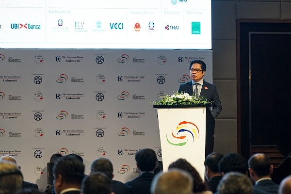 "Trong hành trình tái cấu trúc các nền kinh tế ASEAN định hướng tới một thế hệ công nghệ thông minh, bao trùm, nhân văn và thân thiện với môi trường hơn thì Cộng hòa Italia và các doanh nghiệp Italia là một trong những đối tác có tiềm năng lớn nhất", Chủ tịch VCCI nhấn mạnh.