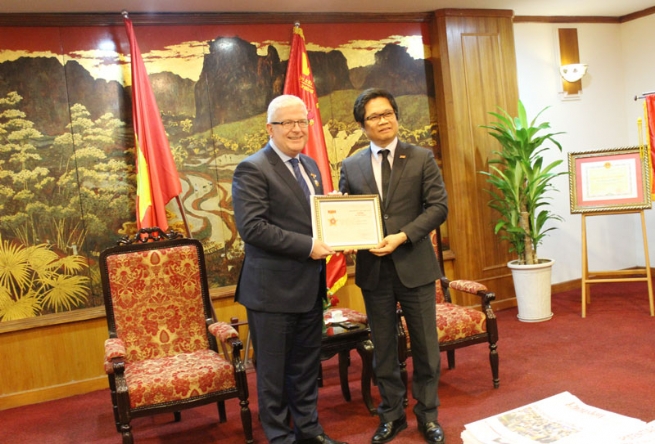 Nhân dịp này, Chủ tịch VCCI Vũ Tiến Lộc đã trao tặng kỷ niệm chương cho Đại sứ Craig Chittick.
