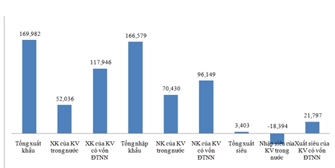 Tăng trưởng xuất khẩu đạt được ở cả 2 khu vực, trong đó khu vực trong nước tăng cao hơn khu vực có vốn FDI (13,9% so với 4,6%). Đây là một trong những điểm nhấn, một kết quả tích cực về xuất nhập khẩu trong 8 tháng đầu năm.