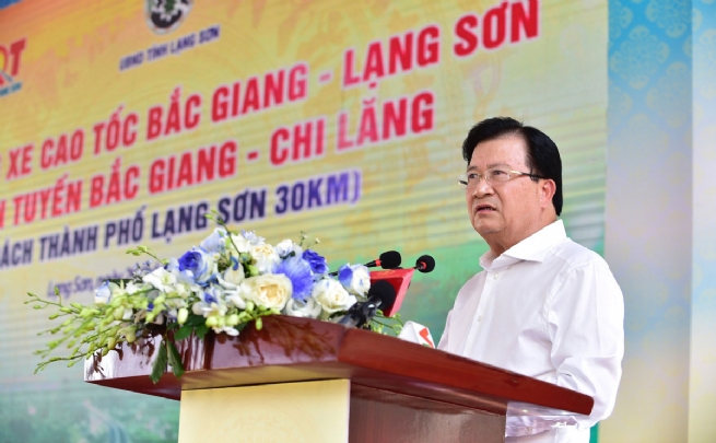 Phát biểu tại buổi lễ, Phó Thủ tướng Trịnh Đình Dũng nêu rõ, thực hiện quy hoạch phát triển đường bộ cao tốc Việt Nam, những năm qua, dưới sự chỉ đạo của Trung ương Đảng, Quốc hội, Chính phủ, Bộ Giao thông vận tải và các địa phương đã tập trung huy động các nguồn lực, phát triển đường bộ cao tốc và đã đạt được nhiều kết quả quan trọng, góp phần thay đổi bộ mặt giao thông Việt Nam, góp phần quan trọng thúc đẩy phát triển kinh tế. Phó Thủ tướng Trịnh Đình Dũng ghi nhận và biểu dương sự nỗ lực của UBND tỉnh Bắc Giang, Lạng Sơn; Ban Quản lý dự án; chủ đầu tư; các ngân hàng thương mại; các đơn vị tư vấn, thiết kế, nhà thầu trong việc khắc phục khó khăn, rút ngắn thời gian thi công tuyến cao tốc Bắc Giang – Lạng Sơn. Tuyên dương các chuyên gia, kỹ sư, cán bộ nhân viên đã cần cù, trách nhiệm và biểu dương sự tích cực, chủ động của Đảng bộ, chính quyền, nhân dân hai tỉnh Lạng Sơn và Bắc Giang đã thực hiện tốt công tác bồi thường, giải phóng mặt bằng, tạo điều kiện thuận lợi để rút ngắn thời gian thi công dự án.