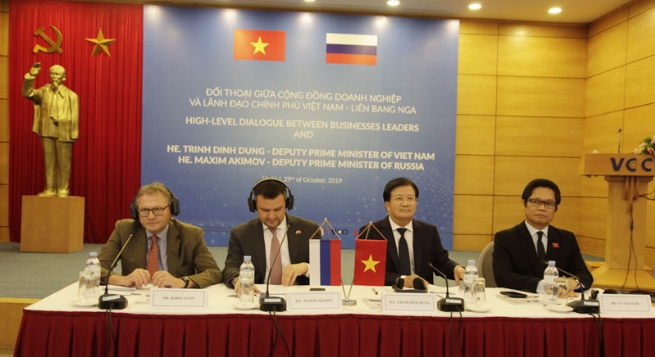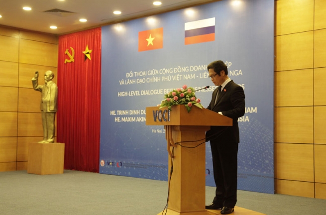Phát biểu tại buổi đối thoại, ông Vũ Tiến Lộc, Chủ tịch VCCI cho biết, năm 2020, Việt Nam và LB Nga sẽ tổ chức 70 năm thiết lập quan hệ ngoại giao, hai nước đã có truyền thống anh em hữu nghị, thân thiết. Hiện Việt Nam là đối tác chiến lược duy nhất của LB Nga tại khu vực Đông Nam Á. Tầm cao của quan hệ chính trị, đối ngoại tin cậy tốt đẹp là nền tảng, là điều kiện thuận lợi cho các quan hệ kinh tế, thương mại, đầu tư phát triển mạnh mẽ.