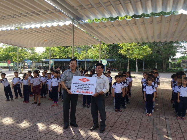 - Trao tặng mái che di động cho Trường Tiểu học Vĩnh Thanh 2, Nhơn Trạch, Đồng Nai: Dow hợp tác với chính quyền địa phương và các đối tác trao tặng mái che di động tại sân trường, giúp cải thiện cơ sở vật chất cho nhà trường và tạo điều kiện an toàn và thuận lợi hơn cho hơn 800 em học sinh khi tham gia các hoạt động ngoại khóa ngoài trời.