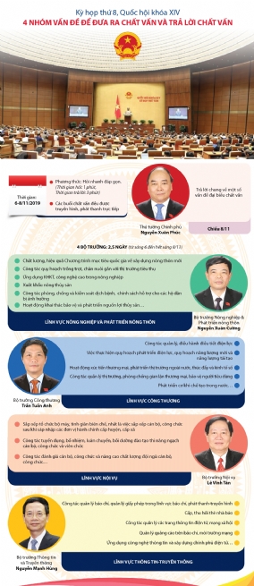 Thực hiện chương trình kỳ họp, từ ngày 6 đến ngày 8/11, các đại biểu Quốc hội đã tiến hành chất vấn 4 Bộ trưởng: Bộ Nông nghiệp và Phát triển nông thôn, Bộ Công Thương, Bộ Nội vụ, Bộ Thông tin và Truyền thông.