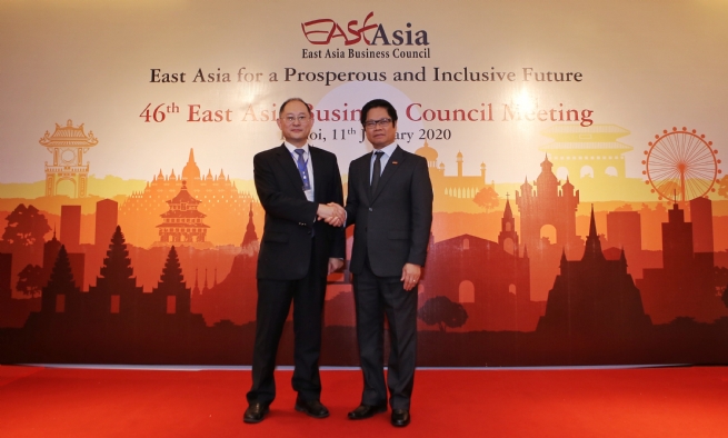 Ngày 11/01/2020, các nhà lãnh đạo doanh nghiệp đại diện cho 13 quốc gia Đông Á thành lập Hội đồng Doanh nghiệp các quốc gia Đông Á (EABC) cùng hiện diện tại cuộc họp EABC lần thứ 46 tại Hà Nội, Việt Nam để chứng kiến lễ chuyển giao vai trò chủ tịch EABC năm 2020 từ Tiến sĩ Lu Pengqi, Phó Chủ tịch Ủy ban Xúc tiến Thương mại Quốc tế Trung Quốc (CCPIT) sang Tiến sĩ Vũ Tiến Lộc, Chủ tịch Phòng Thương mại và Công nghiệp Việt Nam (VCCI).