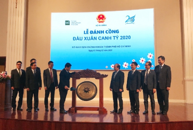 Lễ đánh cồng đầu Xuân Canh Tý 2020 tại HOSE - Ảnh: VGP/Lê Anh