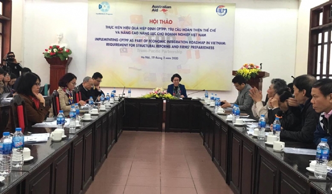 Ngày 19/2, Viện Nghiên cứu quản lý kinh tế Trung ương (CIEM) tổ chức hội thảo với chủ đề “Thực hiện hiệu quả Hiệp định Đối tác Toàn diện và Tiến bộ xuyên Thái Bình Dương (CPTPP) trong tiến trình hội nhập kinh tế yêu cầu hoàn thiện thể chế và nâng cao năng lực cạnh tranh cho doanh nghiệp Việt Nam”.