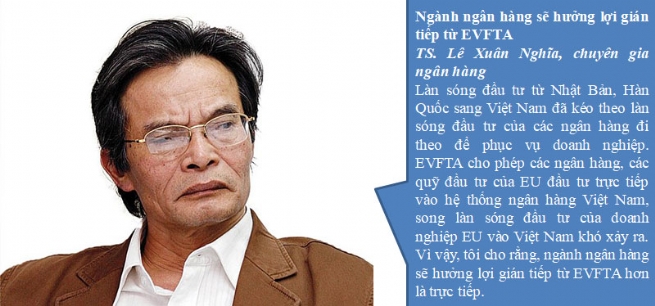 Nhiều chuyên gia kinh tế cũng cho rằng, thông thường, các ngân hàng nước ngoài vào Việt Nam chủ yếu đi theo cộng đồng doanh nghiệp. EVFTA có thể làm thương mại Việt Nam - EU tăng lên, song đầu tư trực tiếp của doanh nghiệp EU vào Việt Nam chưa thể tăng đột biến ngay lập tức. Vì vậy, việc ngân hàng EU “đổ bộ” vào Việt Nam như làn sóng đầu tư của doanh nghiệp Nhật Bản, Hàn Quốc hay ASEAN là không có.