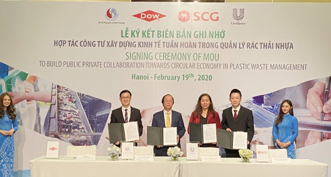 Lần đầu tiên, một thỏa thuận thiết lập Hợp tác công tư (PPC) về xây dựng kinh tế tuần hoàn trong quản lý rác thải nhựa tại Việt Nam đã được ký kết giữa Bộ Tài nguyên và Môi trường và Công ty TNHH Dow Chemical Việt Nam (Dow Việt Nam), Tập đoàn SCG và Công ty TNHH Quốc tế Unilever Việt Nam.