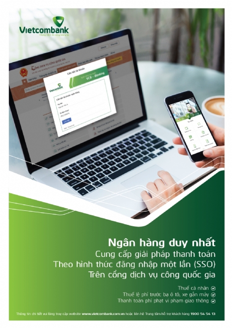 Vietcombank là Ngân hàng đầu tiên kết nối trực tiếp với Cổng DVCQG để cung cấp các giải pháp thanh toán thanh toán trực tuyến cho các dịch vụ mới bổ sung. Đặc biệt, là ngân hàng tiên phong và duy nhất hợp tác với Cổng DVCQG trong việc phát triển cơ chế đăng nhập một lần Single Sign On (SSO) giữa Cổng DVCQG với dịch vụ Internet Banking của ngân hàng, nhằm giúp cho người dân có trải nghiệm hoàn toàn mới và thuận tiện khi truy cập vào Cổng DVCQG sử dụng các dịch vụ công mức độ 4 để hoàn tất thanh toán trực tuyến qua ngân hàng.