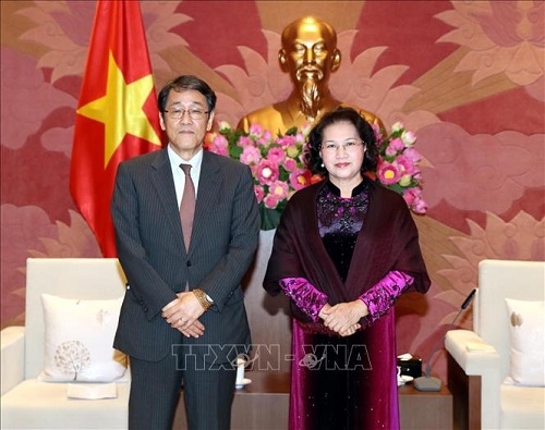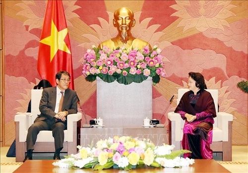 Chủ tịch Quốc hội cảm ơn Đại sứ đã chuyển ý kiến của các doanh nghiệp Nhật Bản tham gia vào quá trình sửa đổi và ban hành mới các văn bản pháp luật của Quốc hội Việt Nam. Đại sứ quán Nhật Bản đã tích cực hỗ trợ triển khai dự án của Cơ quan phát triển quốc tế Nhật Bản (JICA) cho Văn phòng Quốc hội góp phần nâng cao năng lực, kiến thức chuyên môn cho cán bộ công chức của Việt Nam. Chủ tịch Quốc hội ghi nhận sự đóng góp của Đại sứ trong việc thúc đẩy sự hợp tác chặt chẽ, sôi động giữa Nhóm Nghị sĩ hữu nghị Việt Nam-Nhật Bản và Liên minh Nghị sĩ hữu nghị Nhật-Việt của hai nước đã góp phần quan trọng vào việc thúc đẩy quan hệ giữa hai nước, hai Quốc hội.