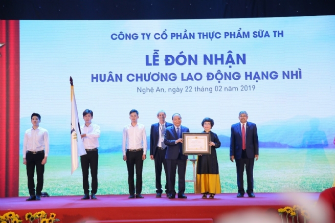 Thay mặt lãnh đạo Đảng, Nhà nước, Thủ tướng Chính phủ Nguyễn Xuân Phúc đã trang trọng thực hiện nghi thức trao Huân chương Lao động hạng Nhì cho Công ty cổ phần thực phẩm sữa TH (đơn vị vận hành trang trại chăn nuôi bò sữa tập trung lớn nhất Châu Á- tập đoàn TH). Huân chương là phần thưởng cao quý, là sự ghi nhận của Đảng và Nhà nước đối với những nỗ lực và cống hiến của Công ty và của tập đoàn TH sau 9 năm đi vào hoạt động.
