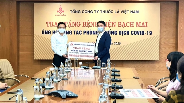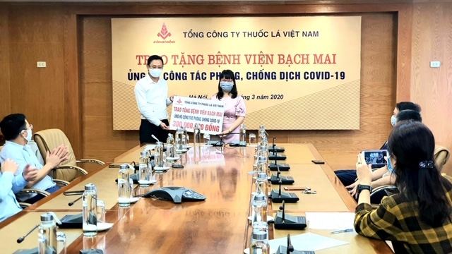 Đặc biệt, cán bộ công nhân viên toàn Tổng công ty hết sức cảm động và khâm phục trước ý chí và tinh thần quả cảm của các y, bác sỹ bệnh viện Bạch mai, những người đang ở tuyến đầu chiến đấu với dịch Covid-19. Nhằm góp một phần nhỏ bé giúp đỡ Bệnh viện Bạch Mai trong giai đoạn khó khăn này, Tổng công ty Thuốc lá Việt Nam trao tặng 300 triệu đồng cho bệnh viện Bạch Mai, 1.000 bộ quần áo bảo hộ và 02 buồng khử khuẩn cho Viện Tim mạch Việt Nam (Bệnh viện Bạch Mai).Đây sẽ là nghĩa cử ban đầu và tiếp sau đây sẽ lan tỏa tới tất cả các đơn vị thành viên của Vinataba cùng chung sức chung lòng cùng cả nước phòng chống đại dịch Covid-19.