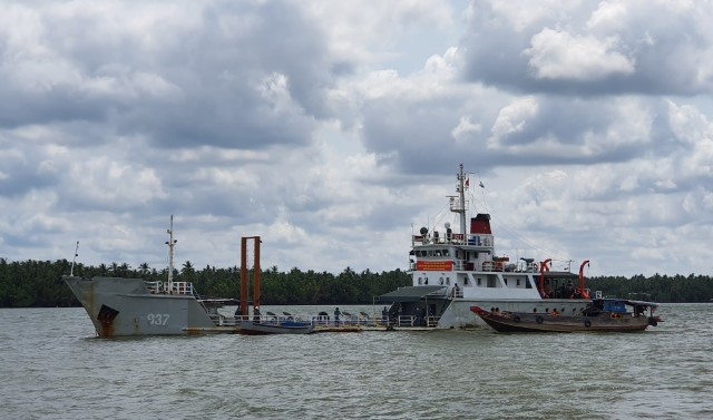 Sau khi đến địa phận xã Hưng Phong, huyện Giồng Trôm, do không có chỗ cập bến nên cán bộ, chiến sĩ tàu 937, Hải đoàn 129 đã phối hợp với chính quyền địa phương tổ chức bơm nước ngọt xuống các ghe để chuyển tải vào các bể chứa của địa phương, sau đó nhân dân trong xã đến mang nước về sinh hoạt, ăn uống.