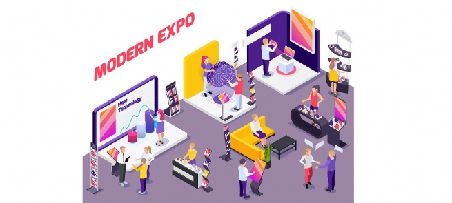 Với không gian ảo rất rộng, có thể chứa hàng ngàn gian hàng và cho phép nhiều người thăm quan, triển lãm ảo có thể mở cả 24 giờ và khách hàng có thể truy cập triển lãm ở bất cứ địa điểm nào trên thế giới. Việc di chuyển trên môi tường ảo rất đơn giản, khách hàng có thể di chuyển qua các phòng hoặc tìm quầy mong muốn trong tích tắc. Triển lãm này có thể có phụ đề cho nhiều ngôn ngữ khác nhau, khách hàng có thể trò chuyện qua các ứng dụng nhắn tin như Skype/ Messenger/ WhatsApp ..
