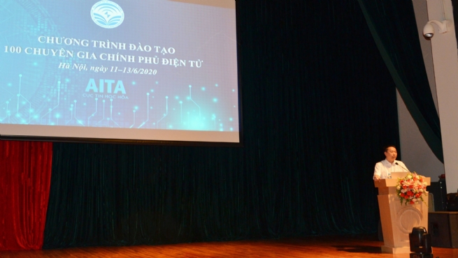 Thực hiện nhiệm vụ Bộ Thông tin và Truyền thông giao chủ trì triển khai việc đào tạo 100 chuyên gia CPĐT, trong thời gian vừa qua, do tình hình dịch Covid-19, Cục Tin học hóa đã tổ chức các khóa học trực tuyến cho học viên thông qua hệ thống đào tạo từ xa. Đánh dấu ngày thứ 56 liên tiếp không có ca nhiễm Covid 19 trong cộng đồng, Cục Tin học hóa triển khai lớp đào tạo trực tiếp cho 100 chuyên gia về Chính phủ điện tử. Khóa đào tạo được khai giảng ngày 11/6/2020 và sẽ kéo dài trong 02 ngày. Lớp học có sự tham gia của 100 học viên là Trưởng/phó phòng CNTT hoặc GĐ TTCNTT&TT của các đơn vị chuyên trách CNTT của các Bộ, ngành và các Sở TTTT.