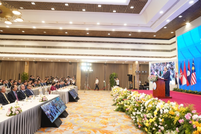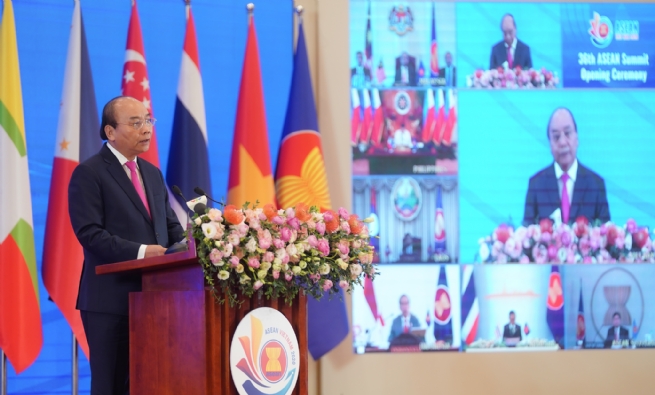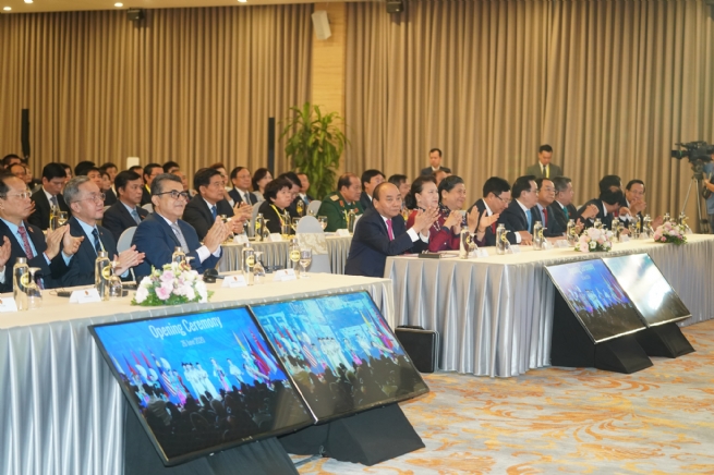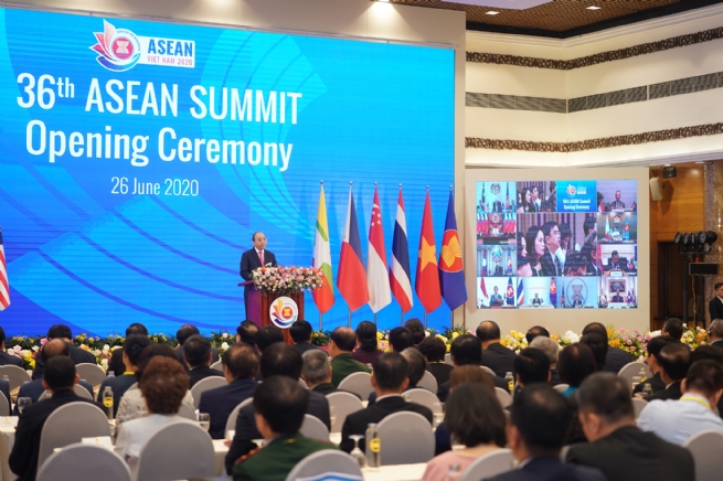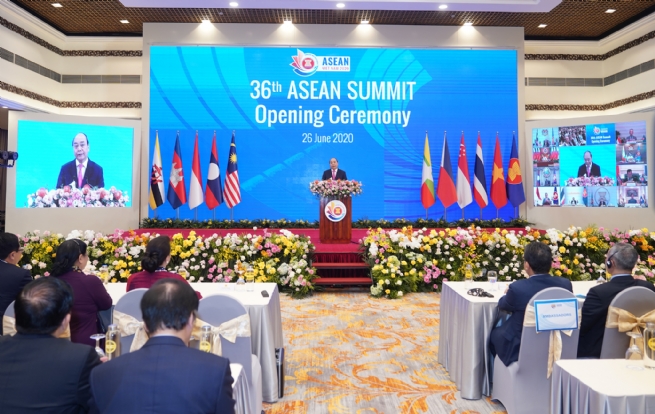 Sáng 26/6, tại Trung tâm Hội nghị Quốc tế, Hà Nội, Thủ tướng Nguyễn Xuân Phúc, Chủ tịch ASEAN 2020 và Chủ tịch Quốc hội Nguyễn Thị Kim Ngân, Chủ tịch Hội đồng Liên Nghị viện ASEAN lần thứ 41 (AIPA 41) dự Lễ khai mạc Hội nghị Cấp cao ASEAN lần thứ 36 theo hình thức trực tuyến.