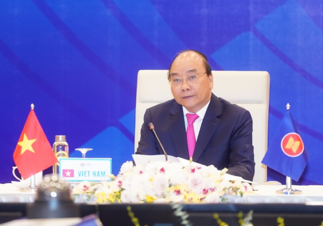 Thủ tướng Nguyễn Xuân Phúc, Chủ tịch ASEAN 2020 chủ trì Phiên toàn thể Hội nghị Cấp cao ASEAN lần thứ 36 theo hình thức trực tuyến. Ảnh VGP/Quang Hiếu