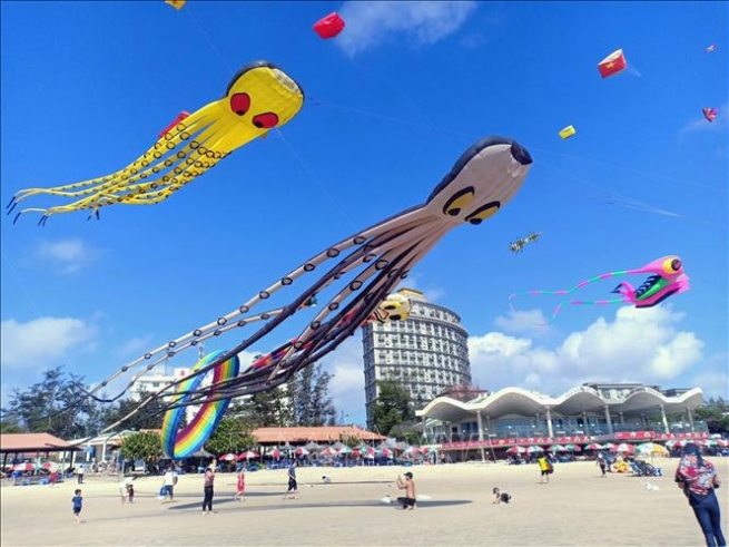 Du khách thả diều tại bãi tắm Bãi Sau, TP. Vũng Tàu (tỉnh Bà Rịa-Vũng Tàu). Ảnh: TTXVN