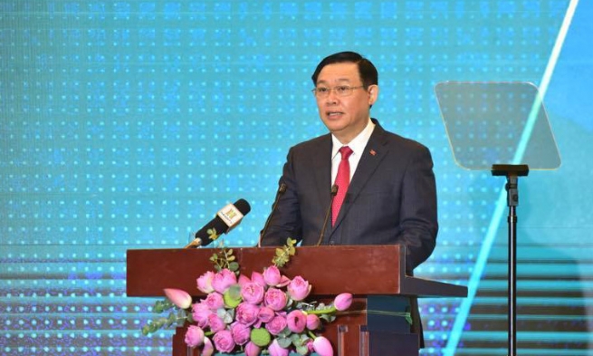 Bí thư Thành ủy Hà Nội Vương Đình Huệ phát biểu tại Hội nghị. Ảnh: VGP/Gia Huy