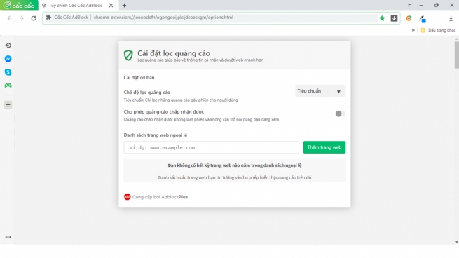 Tính năng lọc quảng cáo mới mà Cốc Cốc kết hợp cùng Adblock Plus sẽ ngăn chặn các quảng cáo làm phiền, phần mềm độc hại hay các yếu tố theo dõi. Nhờ đó, người dùng công nghệ có thể tránh khỏi những nội dung ảnh hưởng đến trải nghiệm duyệt web như quảng cáo bành trướng, quảng cáo pop-up, quảng cáo video chạy tự động,.... đồng thời giảm được nguy cơ bị xâm hại quyền riêng tư, đánh cắp thông tin.
