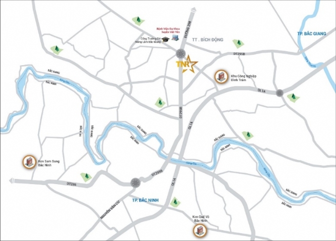 Tọa lạc tại trung tâm hành chính - kinh tế - xã hội của huyện Việt Yên, tỉnh Bắc Giang, TNR Stars Bích Động khẳng định thế “Thịnh vượng - Tài lộc” với nhiều lợi thế về giao thương, kết nối.