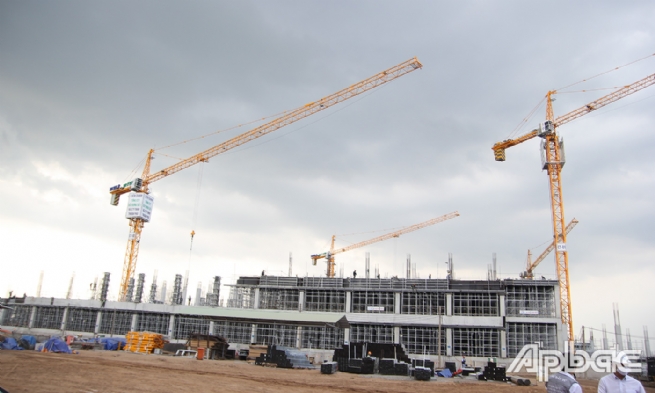 Công trường xây dựng Bệnh viện đa khoa tỉnh Tiền Giang. Ảnh: Báo Ấp Bắc