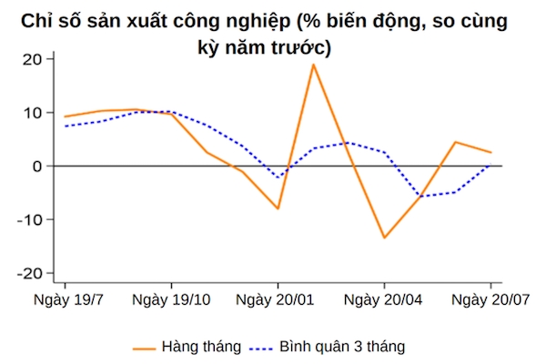 Trước khi dịch bùng phát lại, kinh tế trong nước vẫn phục hồi với chỉ số sản xuất công nghiệp (IPI) tăng 2,5% (so cùng kỳ năm trước) trong tháng 7. Tốc độ tăng này thấp hơn một chút so với tháng 5 và tháng 6.