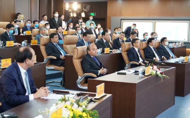 Thủ tướng Nguyễn Xuân Phúc cùng các đại biểu tham dự lễ khai trương. - Ảnh: VGP/Quang Hiếu
