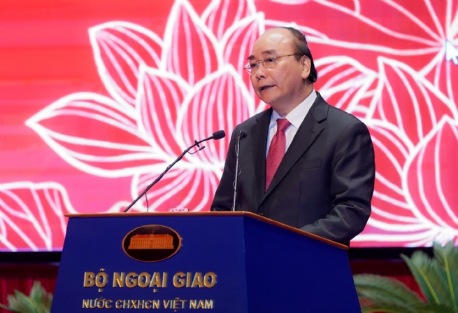 Phát biểu tại sự kiện quan trọng đối với 3.000 cán bộ, nhân viên toàn ngành ngoại giao, Thủ tướng Nguyễn Xuân Phúc nhấn mạnh, nền ngoại giao của nước ta đã vinh dự được Chủ tịch Hồ Chí Minh, cũng là Bộ trưởng Ngoại giao đầu tiên trực tiếp xây dựng, chỉ đạo và rèn luyện. 75 năm qua, ngành ngoại giao đã đạt được thành tựu quan trọng, đáng tự hào, đóng góp thiết thực vào sự nghiệp giải phóng dân tộc, thống nhất đất nước trước đây cũng như xây dựng và bảo vệ Tổ quốc ngày nay.