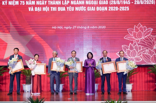 Phó Thủ tướng, Bộ trưởng Ngoại giao Phạm Bình Minh trao Cờ Thi đua Chính phủ năm 2019 tặng một số đơn vị Bộ Ngoại giao. Phó Chủ tịch nước Đặng Thị Ngọc Thịnh trao Huân chương Lao động cho một số cán bộ ngành ngoại giao.