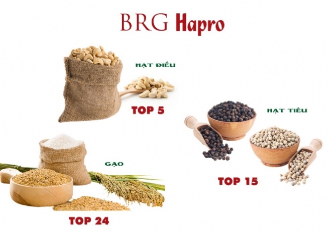 Hapro được Bộ Công thương công nhận là Doanh nghiệp xuất khẩu uy tín năm 2019 với 03 mặt hàng xuất khẩu chủ lực: Hạt điều; Hạt tiêu; Gạo.