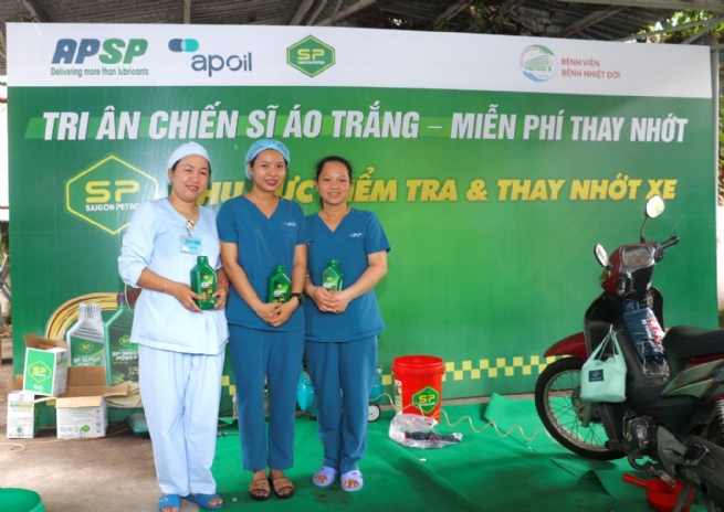 Được mệnh danh là những “chiến sĩ áo trắng” trên mặt trận phòng chống dịch bệnh COVID-19 trong những ngày tháng qua đội ngũ y bác sĩ và người lao động ngành y tế đang “căng mình” sẵn sàng nhận nhiệm vụ trong mọi tình huống để đảm bảo sức khỏe của nhân dân và ổn định đời sống xã hội góp phần thực hiện mục tiêu kép là vừa phòng chống dịch bệnh và phát triển kinh tế - xã hội. Trước nghĩa cử cao đó vừa qua, Dầu nhớt Saigon Petro đã tổ chức ngày hội “Tri ân chiến sĩ áo trắng – miễn phí thay nhớt” cho toàn thể Cán bộ công nhân viên Bệnh Viện Bệnh Nhiệt Đới TP.HCM, qua đó giúp đội ngũ y bác sĩ giảm bớt phần nào lo toan về những sinh hoạt đời sống hàng ngày.