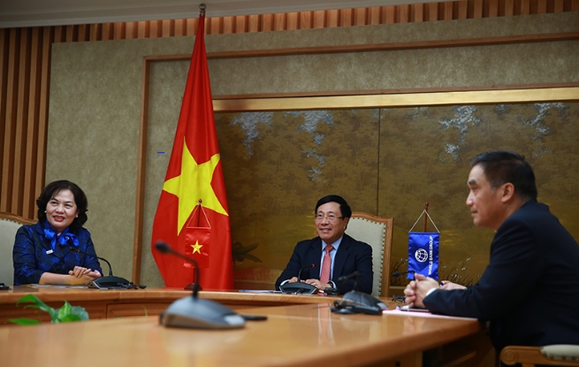 Tối ngày 4/11, Phó Thủ tướng, Bộ trưởng Bộ Ngoại giao Phạm Bình Minh đã có buổi làm việc trực tuyến với Tổng Giám đốc điều hành của Ngân hàng Thế giới (WB) Axel van Trotsenburg.