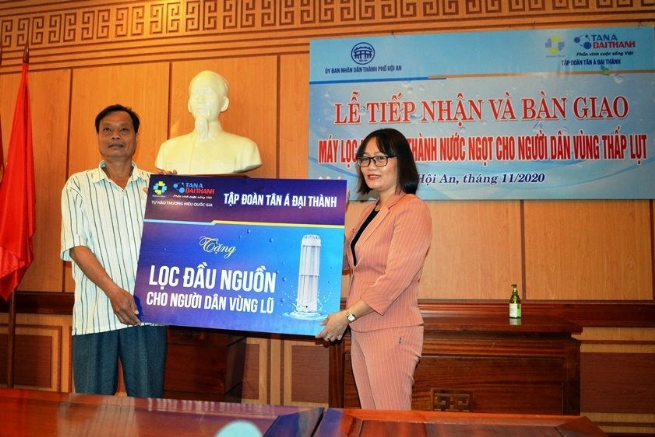 Thành phố Hội An là một trong những địa phương chịu nhiều ảnh hưởng của đợt mưa lũ vừa qua của tỉnh Quảng Nam. Nước ngập sâu, kéo dài khiến người dân ở đây gặp rất nhiều khó khăn, đặc biệt là thiếu nước sạch để sịnh hoạt. Để chung sức cùng chính quyền địa phương và người dân cả nước hỗ trợ người dân bị ảnh hưởng của lũ, Tập đoàn Tân Á Đại Thành đã dành tặng 50 máy lọc nước đầu nguồn, giúp giải quyết nhu cầu nước sạch của người dân tại các địa phương này.
